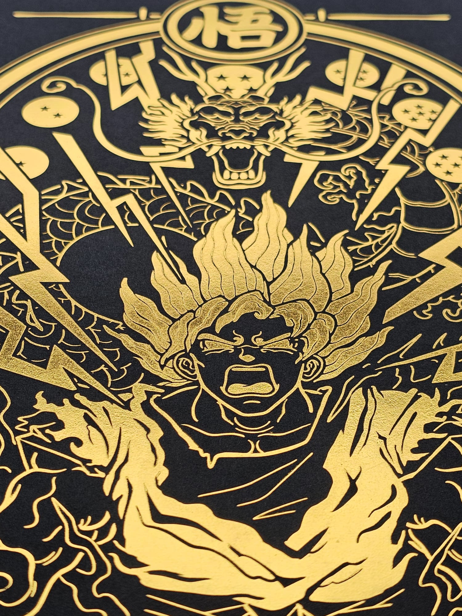Part of the latest release from my gold foil series, Goku! These art pieces have been so popular at conventions that I've decided to make them available online for a limited time only - get in before Christmas! They're the perfect gift to yourself and for friends and family.
